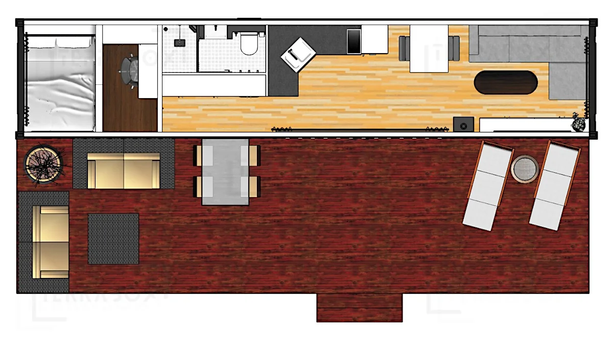Samtliga containerhus är vinterbonade med välisolerade väggar, driftsekonomisk värmepump och varmvattensberedare (i modeller med toalett/badrum). El- och VVS-system finns installerade och är förberedda för att anslutas utifrån.